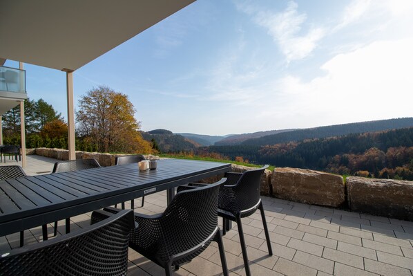 Das Haus Appartement 8 im Haus Bergblick liegt ideal für Aktivurlauber. Man hat es nicht weit zu den Pisten oder Wanderwegen. Abgesehen davon ist der Ausblick vom Balkon unschlagbar - direkt auf die Bobbahn und die Wälder.